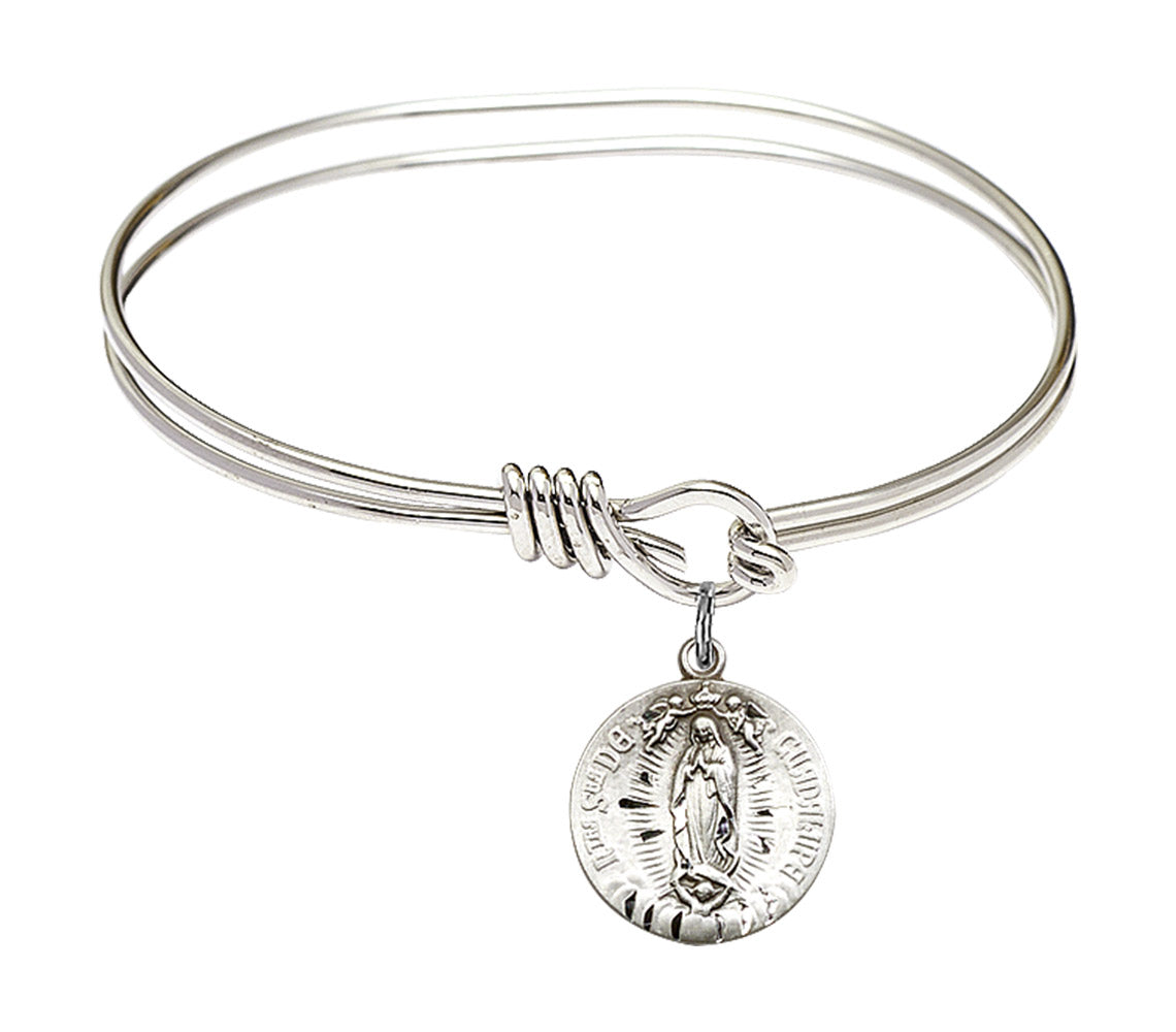 5 3/4 inch Oval Eye Hook Rhodium Bangle Bracelet with Sterling Silver Our Lady of Guadalupe Charm
