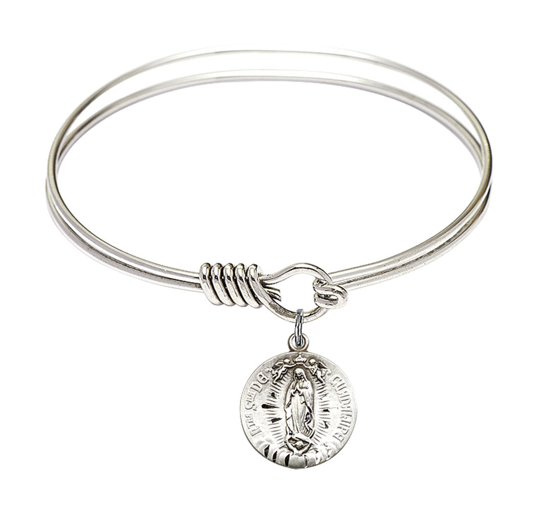 6 1/4 inch Round Eye Hook Rhodium Bangle Bracelet with Sterling Silver Our Lady of Guadalupe Charm