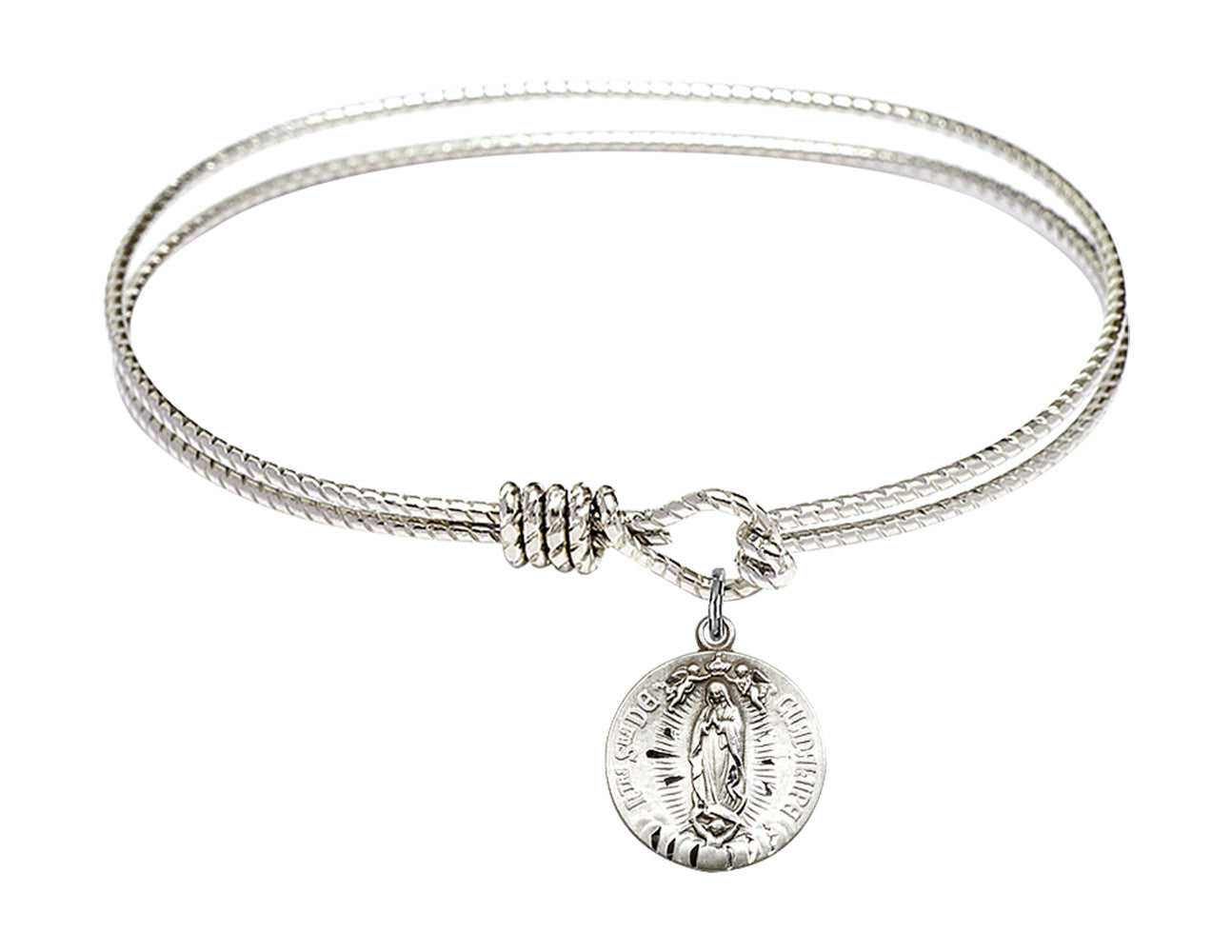 7 1/4 inch Oval Eye Hook Rhodium Bangle Bracelet with Sterling Silver Our Lady of Guadalupe Charm