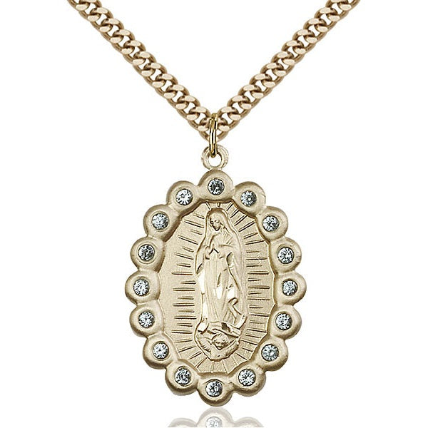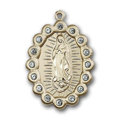 1 1/4 x 7/8-inch Gold-Filled (14K) Our Lady of Guadalupe Medal, expertly crafted in the USA for a lifetime of use.