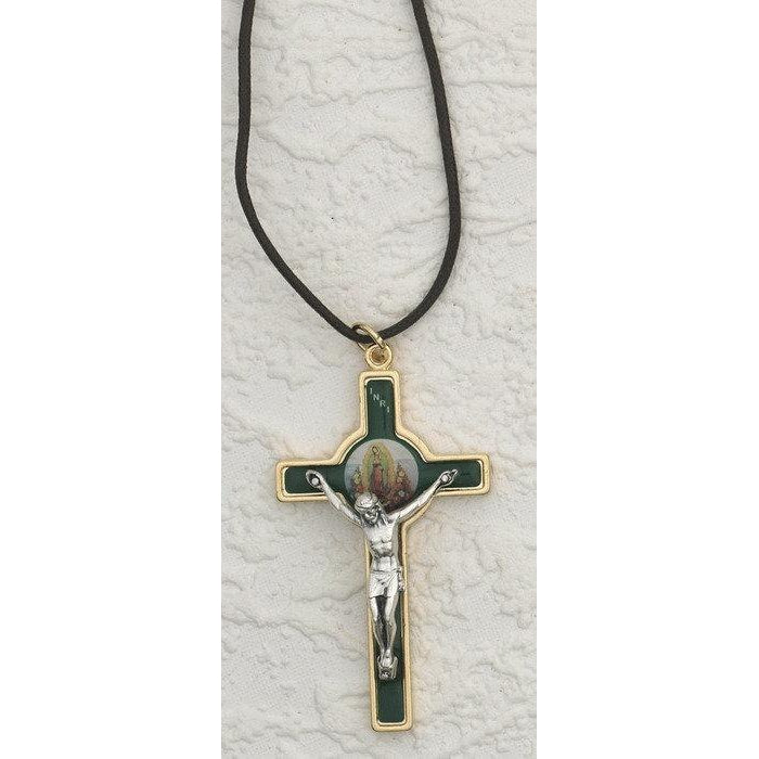 The vibrant enamel colors capture the iconic details of Our Lady's tilma image, making this cross perfect for personal prayer, a meaningful gift, or as a cherished sacramental in your home. Includes a cord for wearing or hanging. Ships the next business day.