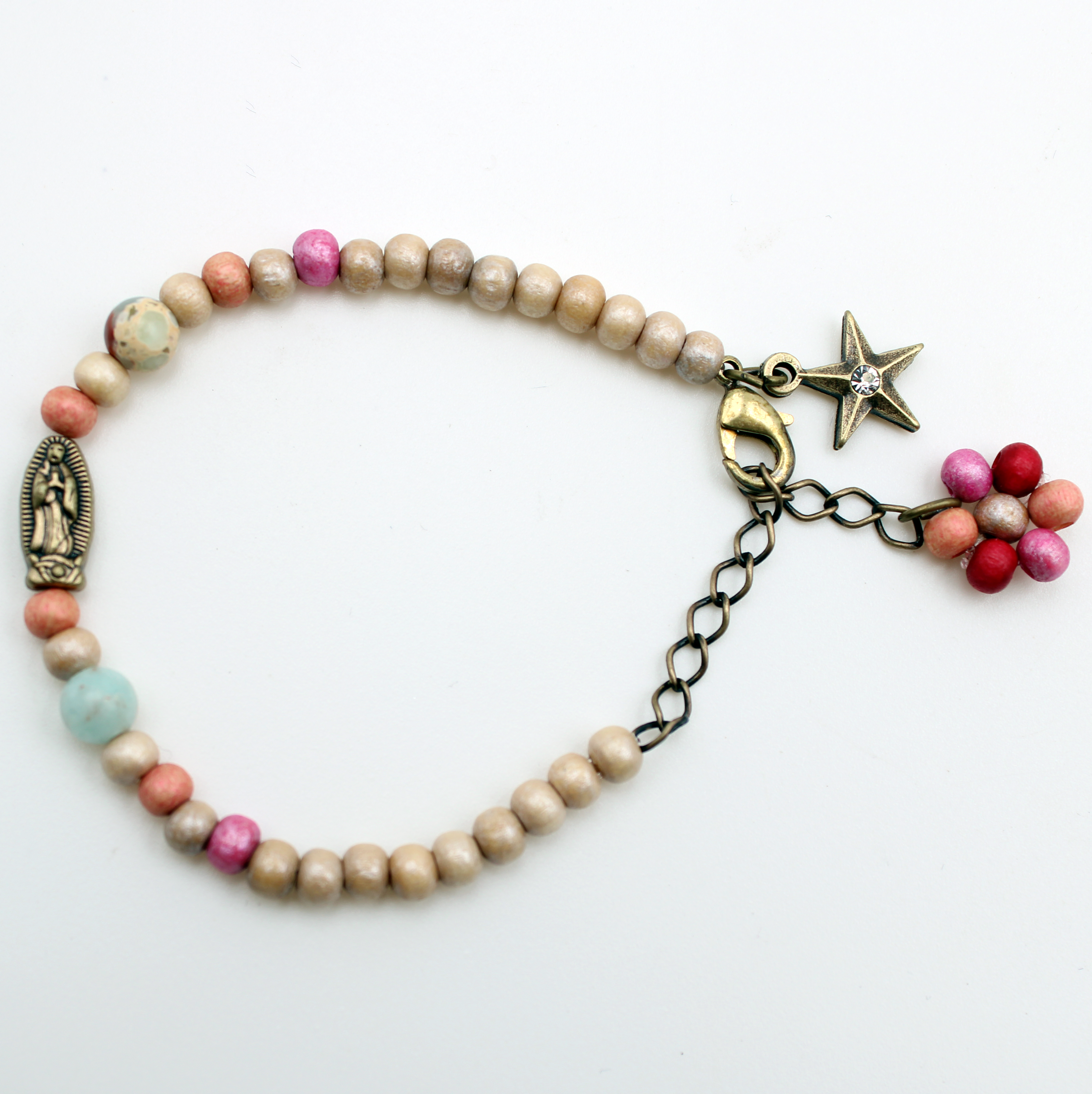 Our Lady of Guadalupe Bracelet with 4MM beads and Antique Gold Accents