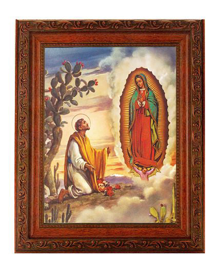 Our Lady Of Guadalupe with Juan Diego Ornate Wood Frame 10X12"
