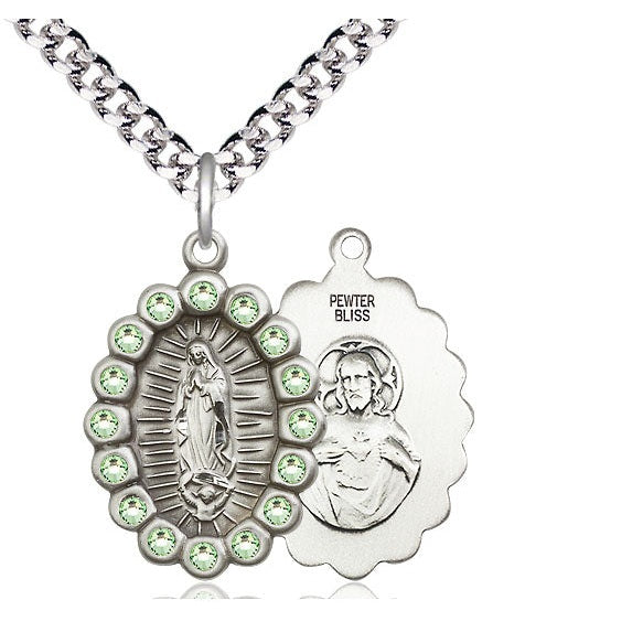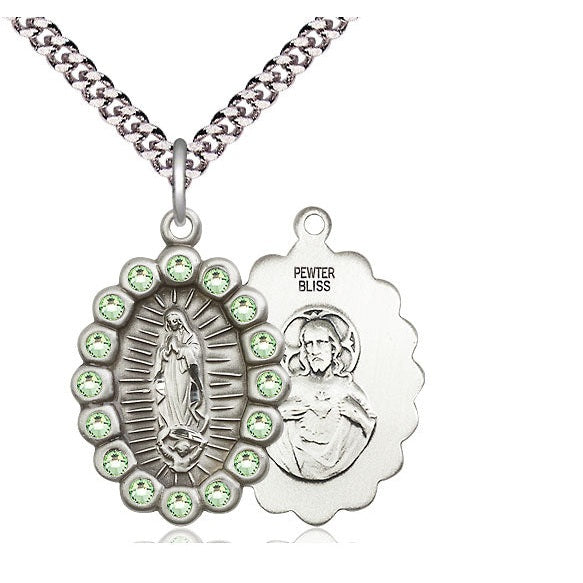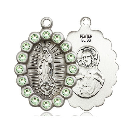 Pewter Our Lady of Guadalupe Medal with Peridot Swarovski stones | Medium