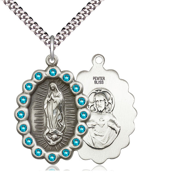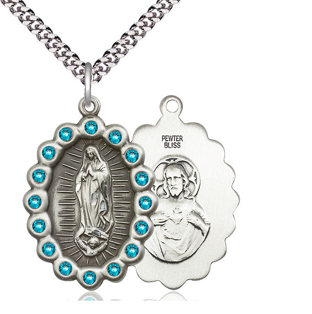Pewter Our Lady of Guadalupe Medal with Zircon Swarovski stones | Large