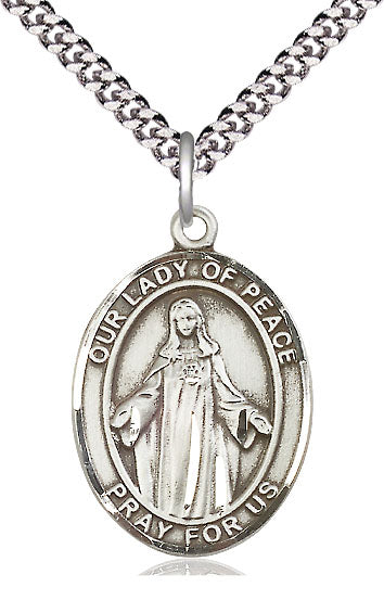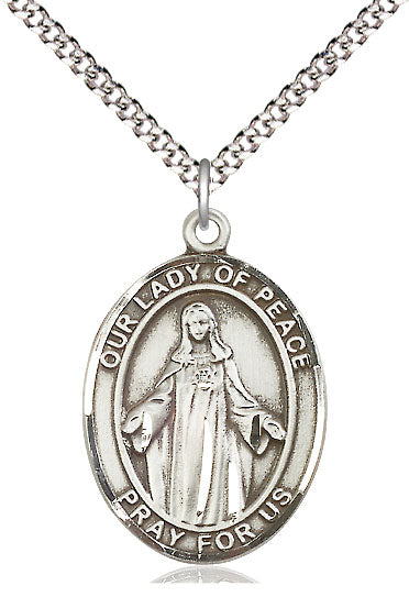 The large-sized Our Lady of Peace Medal will arrive in a deluxe jewelry box, ready to wear or give as a gift.