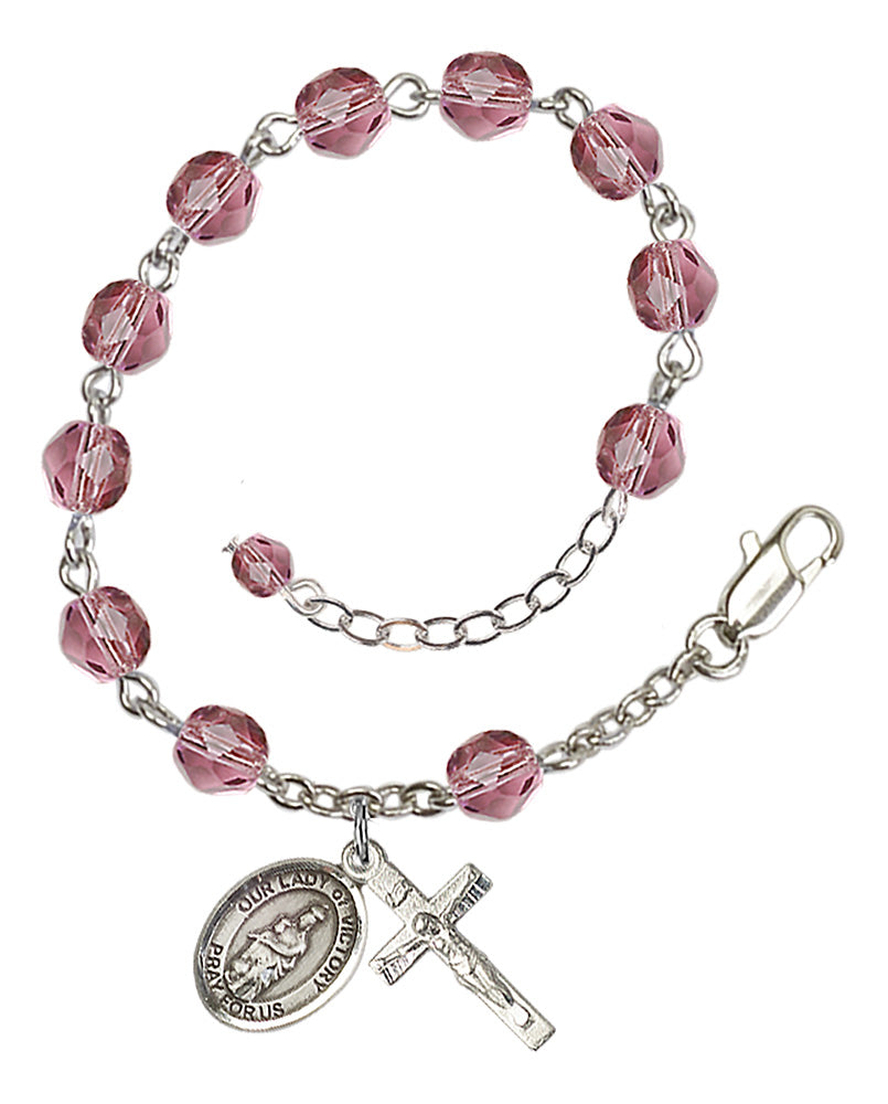 Silver-Plated 6mm Fire-Polished Our Lady of Victory Rosary Bracelet in Amethyst | Engravable