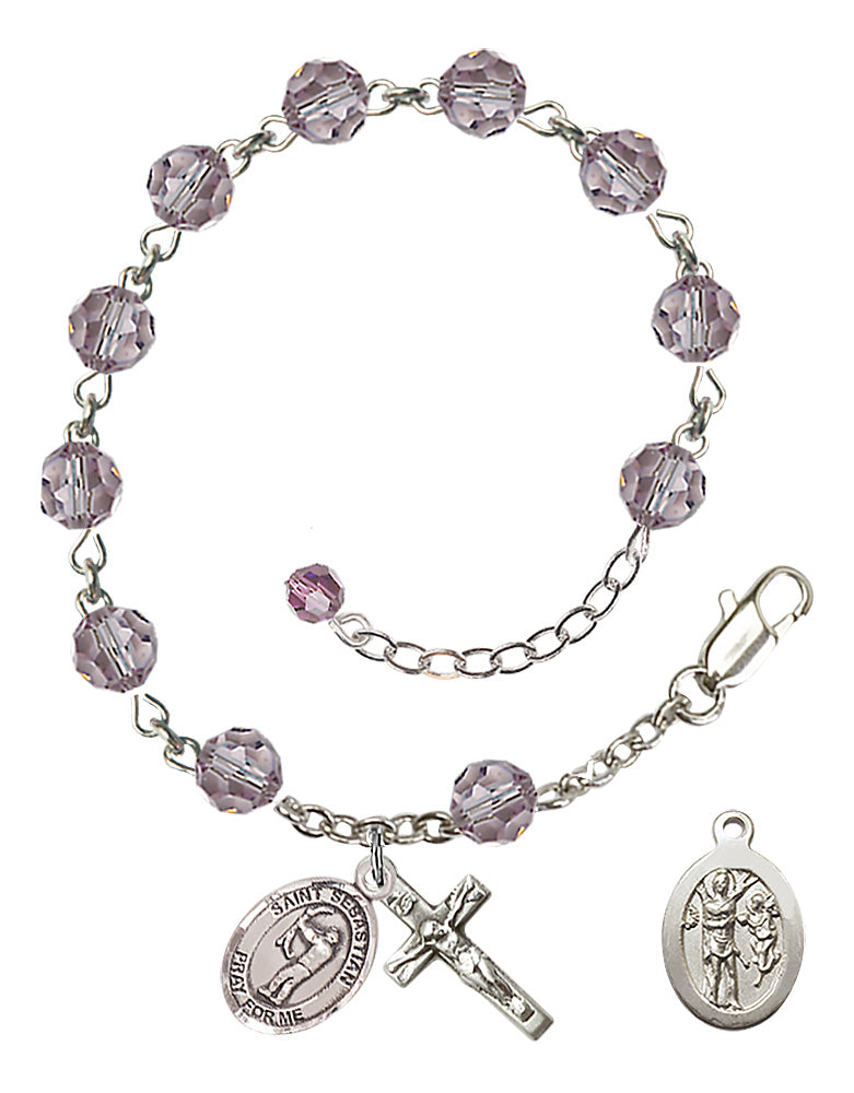 Adjustable Sterling Silver 6mm Austrian Crystal St. Sebastian Archery Rosary Bracelet in Light Amethyst
