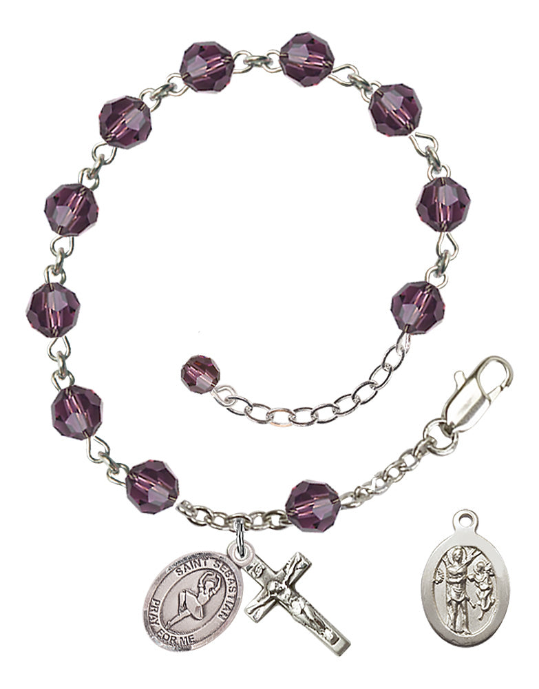 Sterling Silver 6mm Austrian Crystal St. Sebastian Dance Rosary Bracelet in Amethyst | Engravable