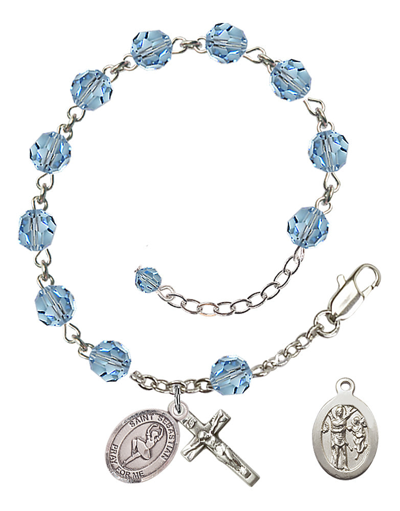 Sterling Silver 6mm Austrian Crystal St. Sebastian Dance Rosary Bracelet in Aqua | Engravable