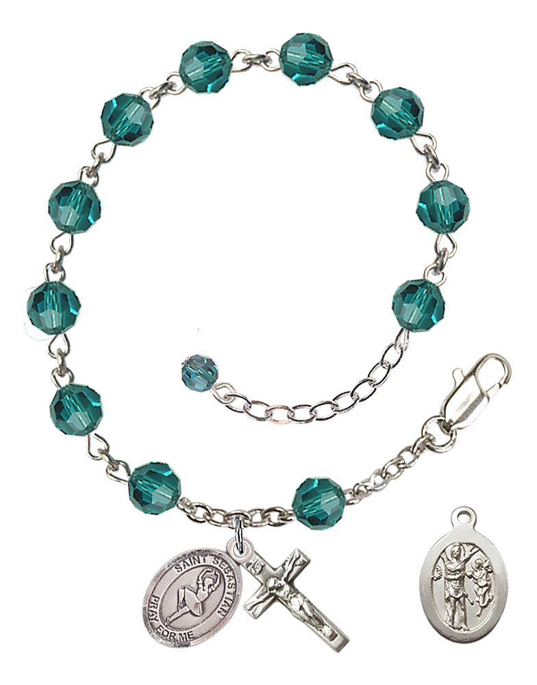 Sterling Silver 6mm Austrian Crystal St. Sebastian Dance Rosary Bracelet in Zircon | Engravable