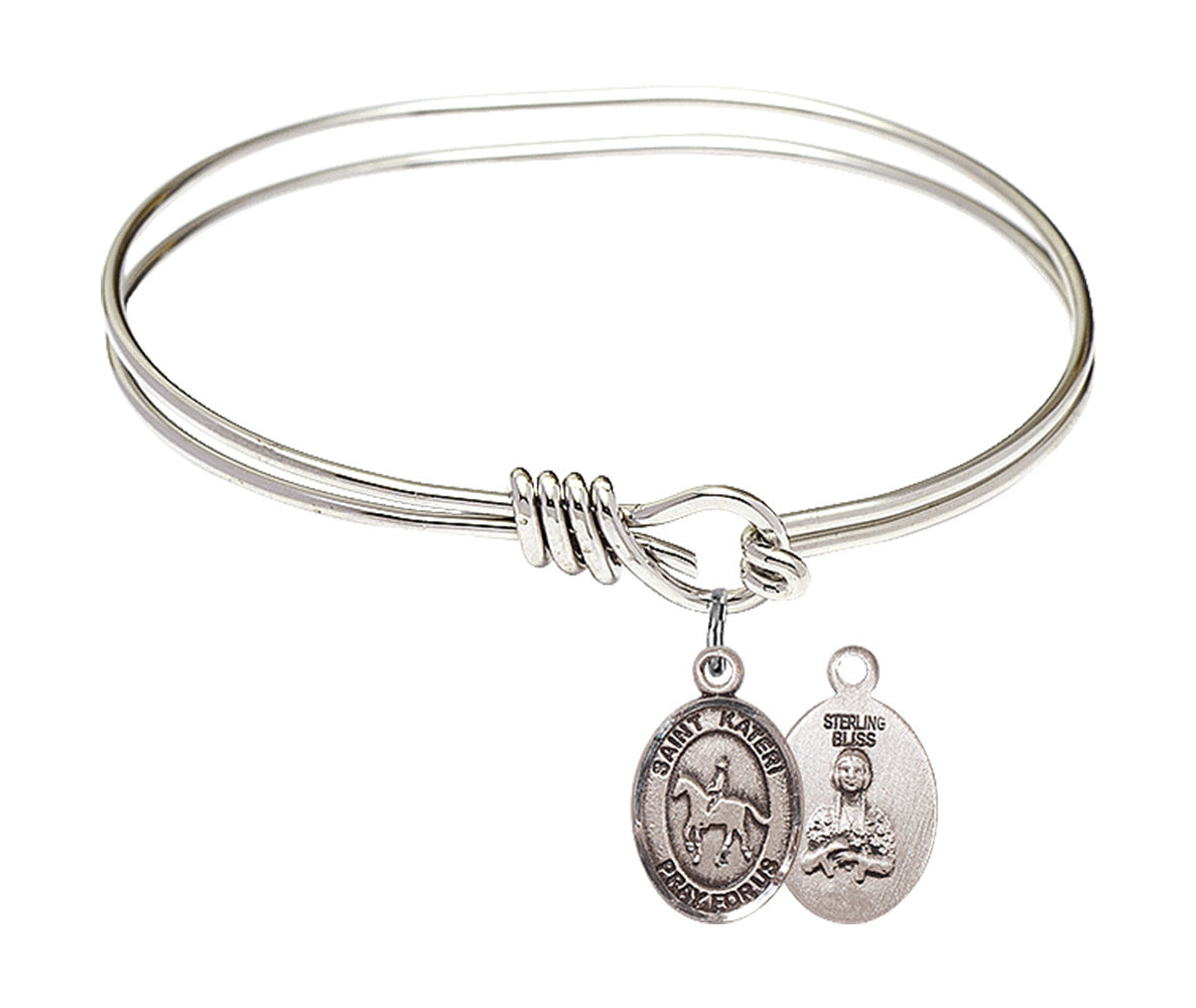 5 3/4 inch Oval Eye Hook Rhodium Bangle Bracelet with Sterling Silver St. Kateri/Equestrian Charm