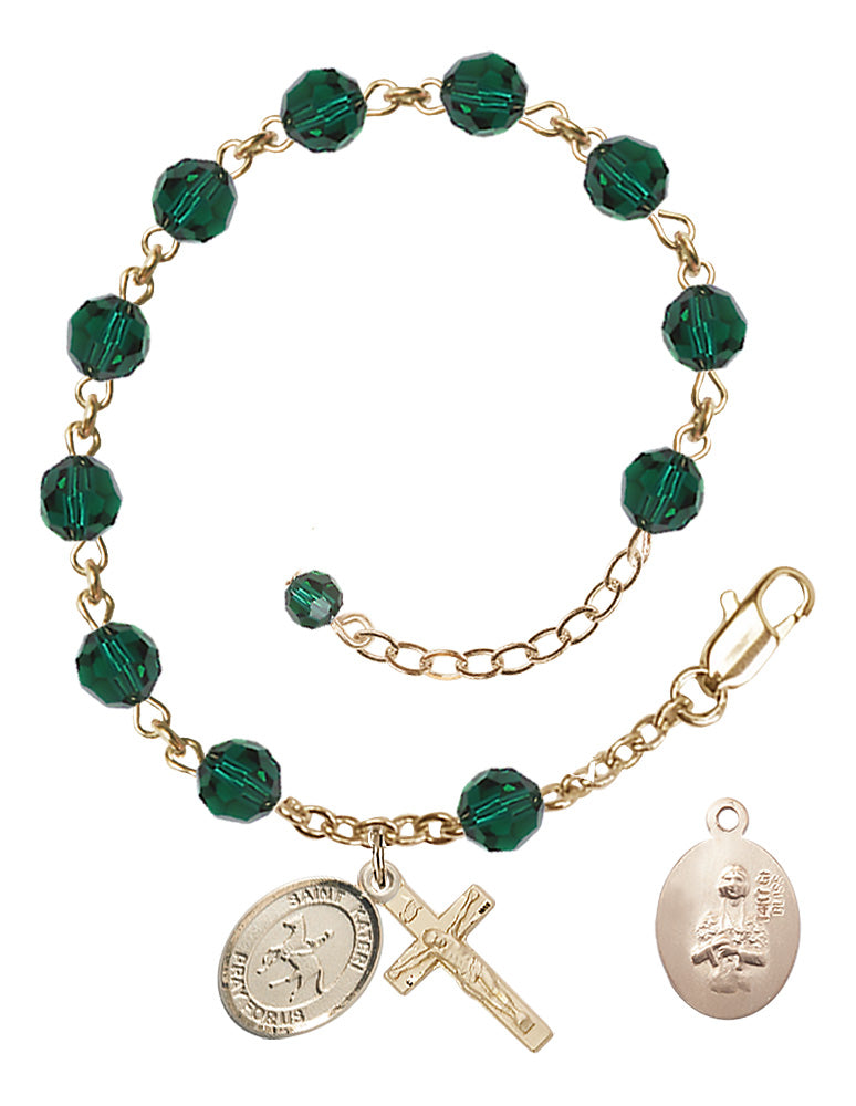 Adjustable 14Kt Gold-Filled 6mm Austrian Crystal Sts. Kateri Equestrian Rosary Bracelet in Emerald