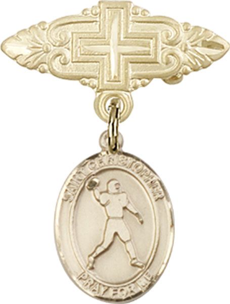 14kt Gold Filled Badge Pin With Cross St. Christopher/Football Baby Badge