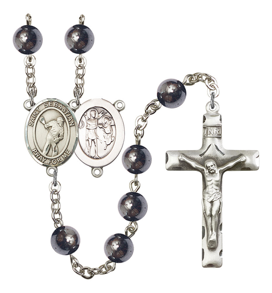 Saint Sebastian and Lacrosse Rosary with Hematite Beads
