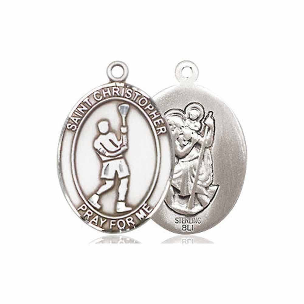 Sterling Silver Saint Christopher Lacrosse Medal | Medium