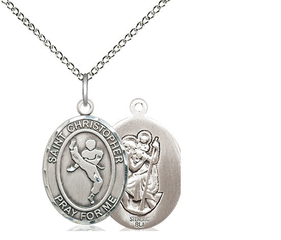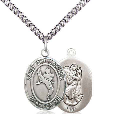 Sterling Silver Saint Christopher Martial Arts Medal | Medium
