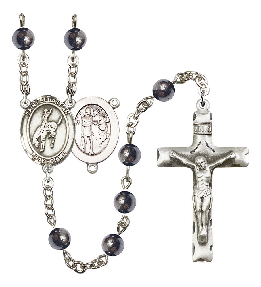 Saint Sebastian and Rodeo Rosary with 6mm Hematite Beads