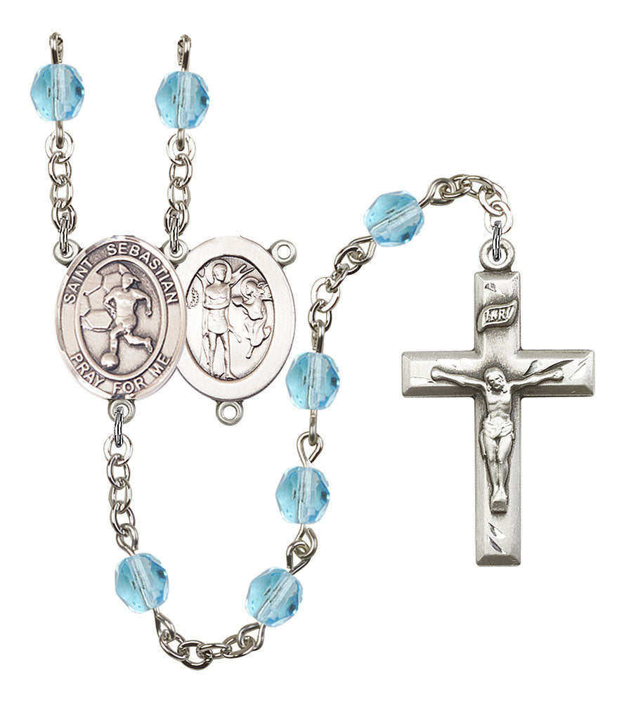 Saint Sebastian and Women's Soccer Rosary with Aqua Beads