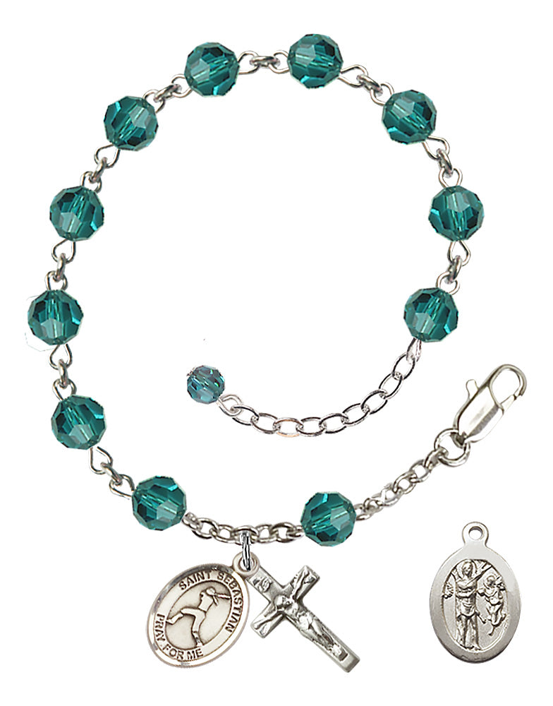 Sterling Silver 6mm Austrian Crystal St. Sebastian Softball Rosary Bracelet in Zircon | Engravable