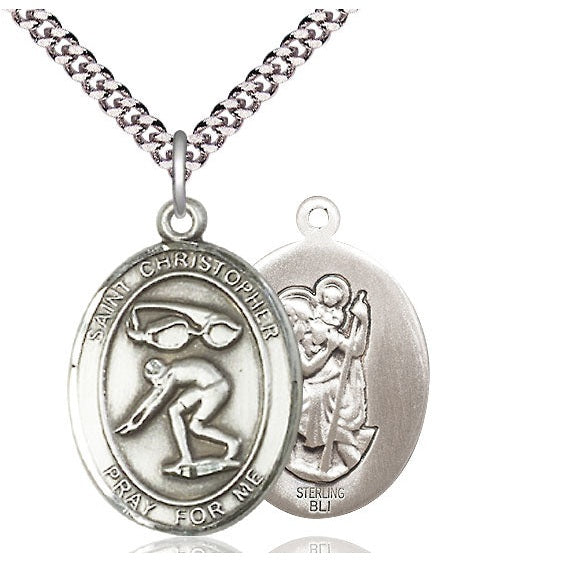 Sterling Silver Saint Christopher Swimming Medal | Large