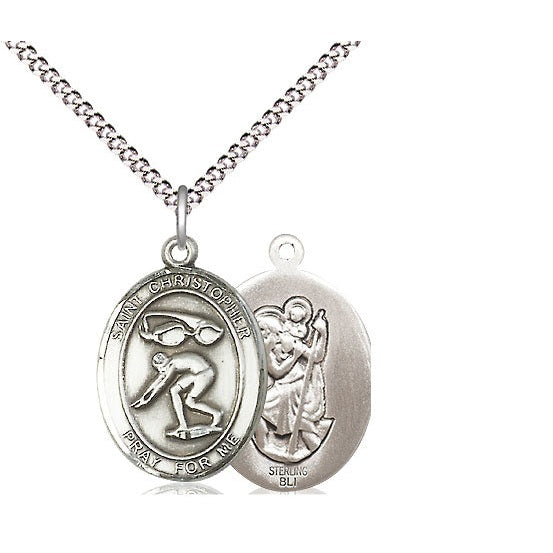 Sterling Silver Saint Christopher Swimming Medal | Medium