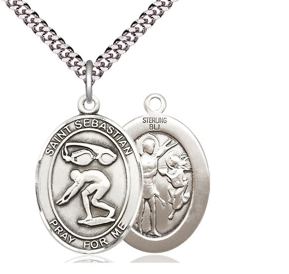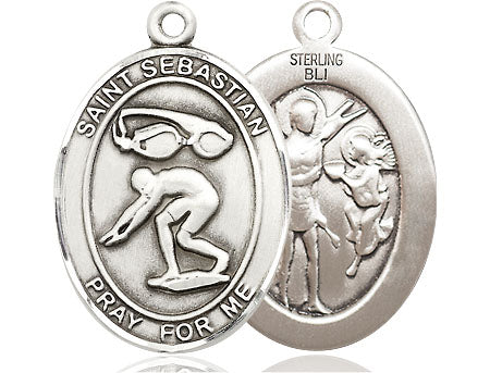 Sterling Silver Saint Sebastian Swimming Medal | Large