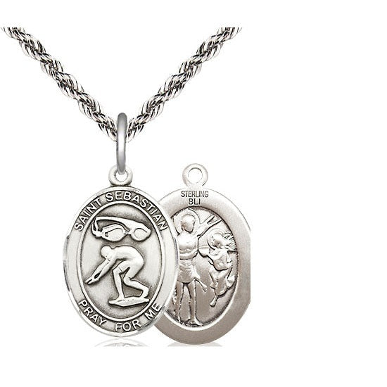 Sterling Silver Saint Sebastian Swimming Medal | Medium
