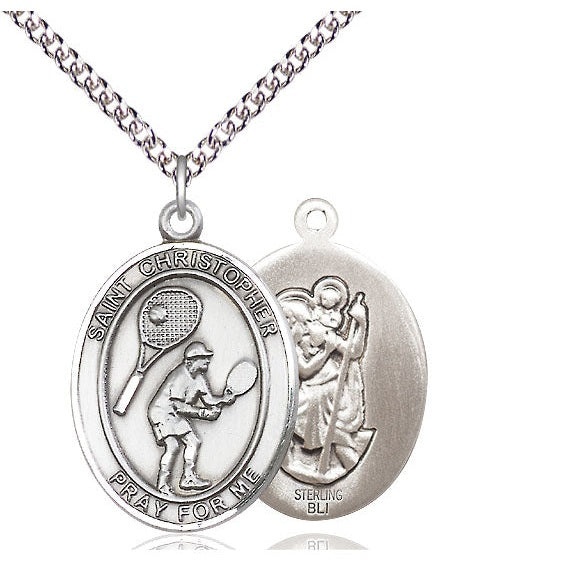 Sterling Silver Saint Christopher Tennis Medal | Large