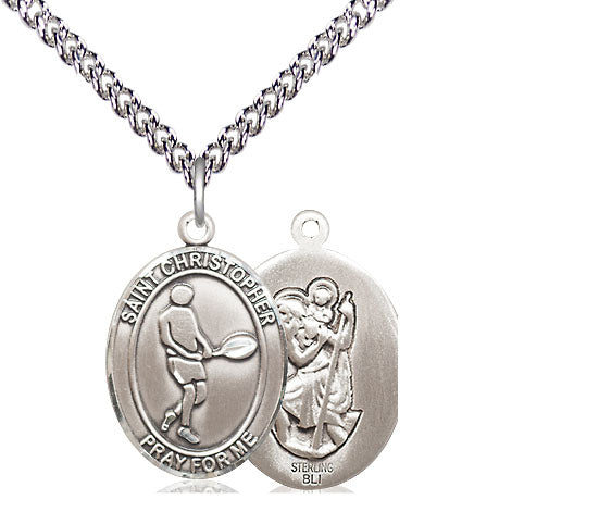 Sterling Silver Saint Christopher Tennis Medal | Medium