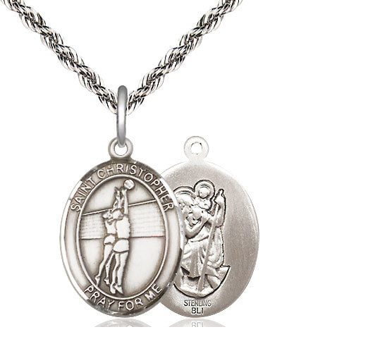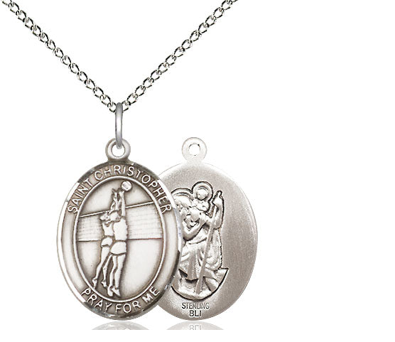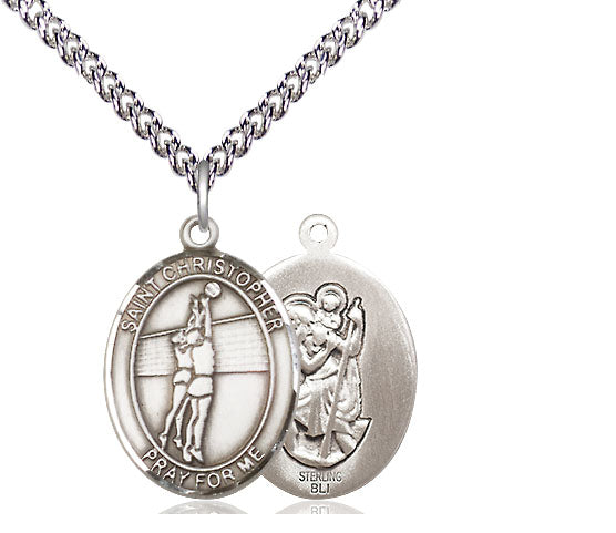Sterling Silver Saint Christopher Volleyball Medal | Medium