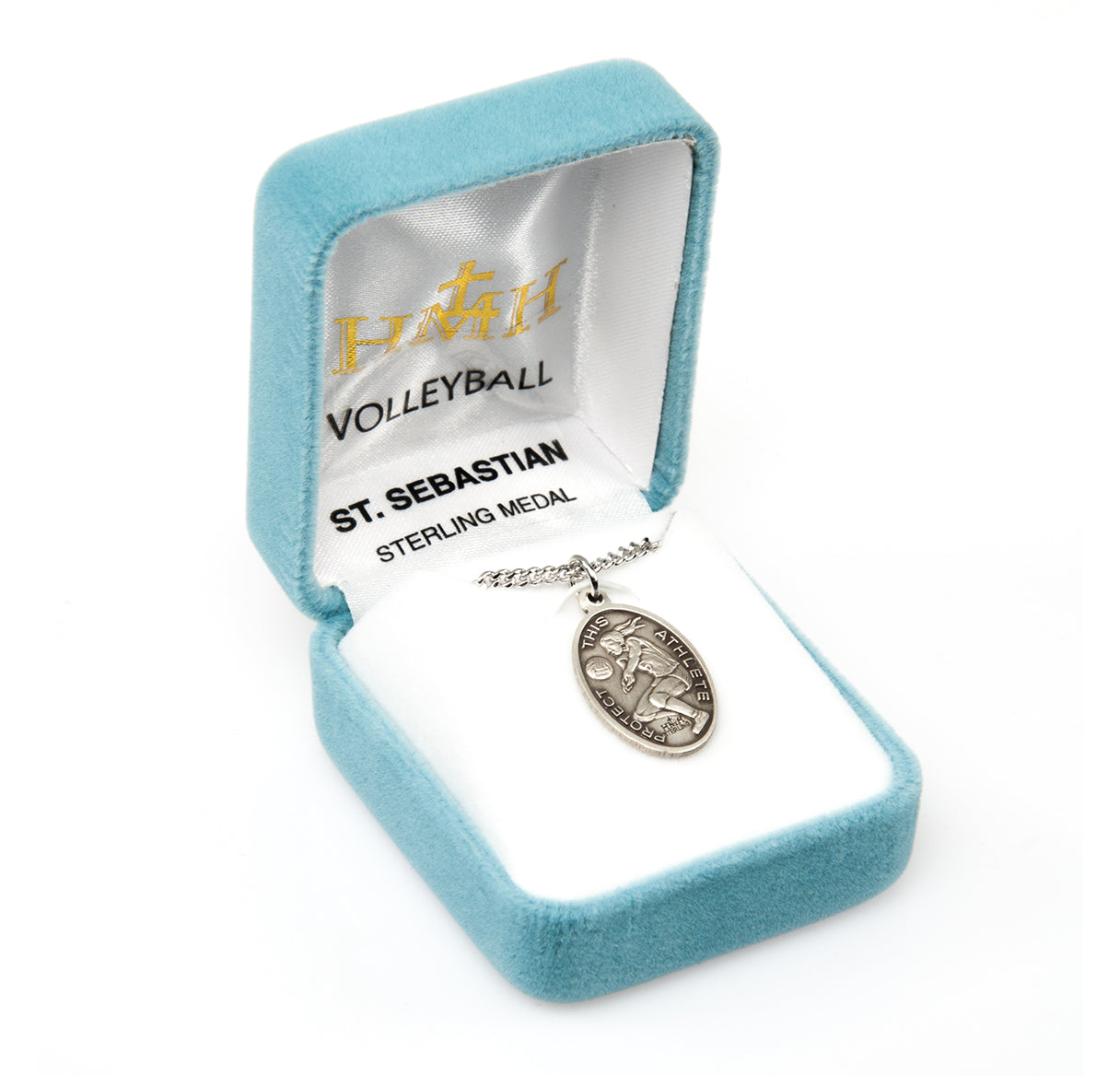 This Sterling Silver St. Sebastian Volleyball Athlete Medal is made in the USA.