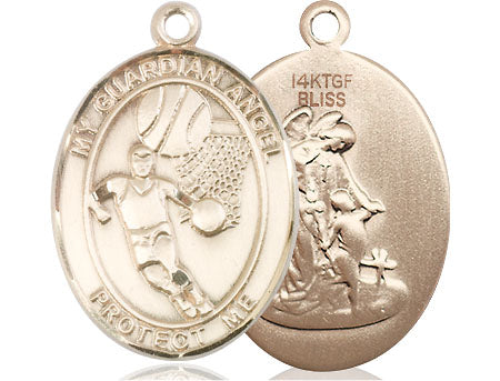 14kt Gold Filled Guardian Angel Basketball Medal | Large