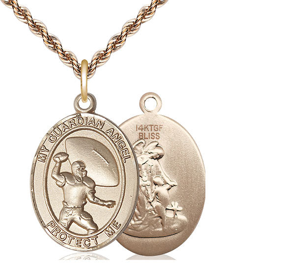 14kt Gold Filled Guardian Angel Football Medal | Large