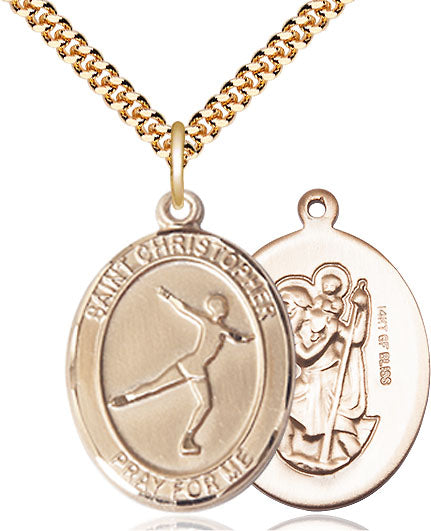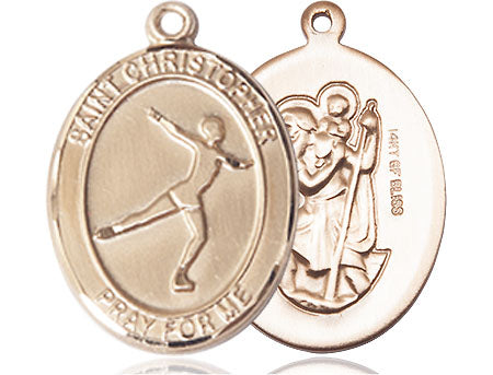 14kt Gold Filled St. Christopher Figure Skating Medal | Large