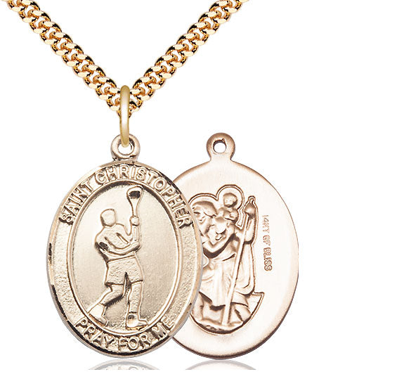 14kt Gold Filled St. Christopher Lacrosse Medal | Large