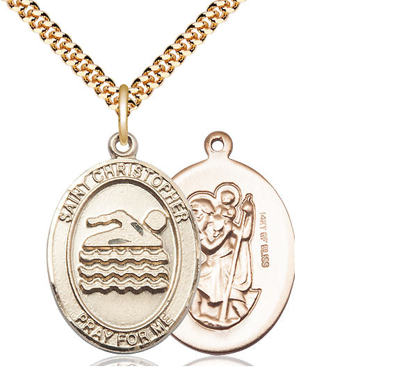 14kt Gold Filled St. Christopher Swimming Medal | Large