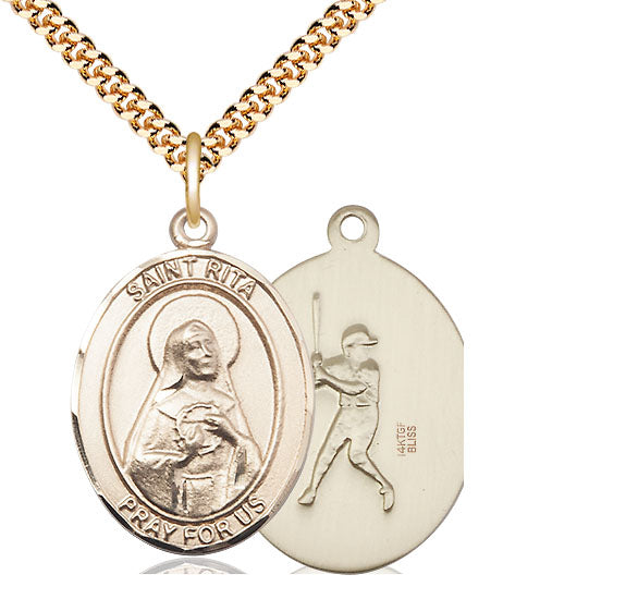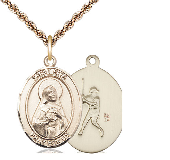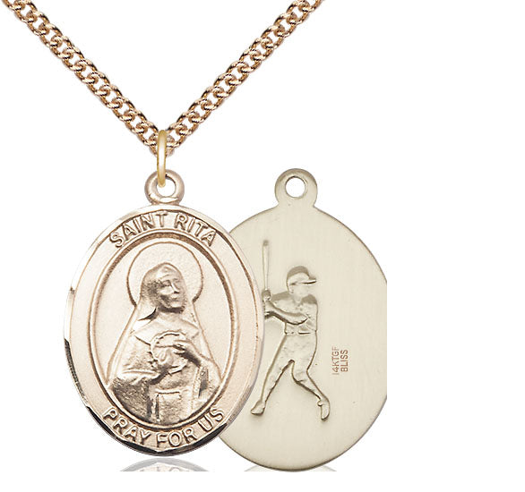 14kt Gold Filled St. Rita Baseball Medal | Large