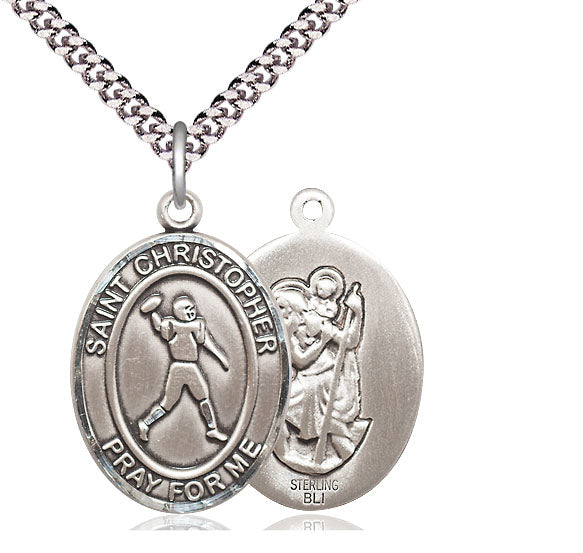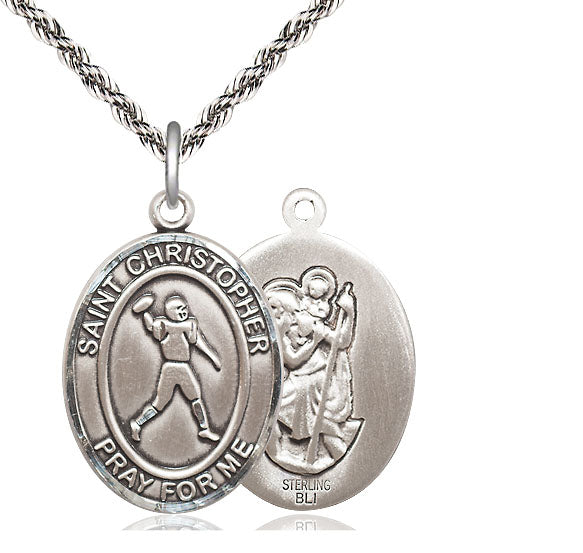 Sterling Silver St. Christopher Football Medal | Large