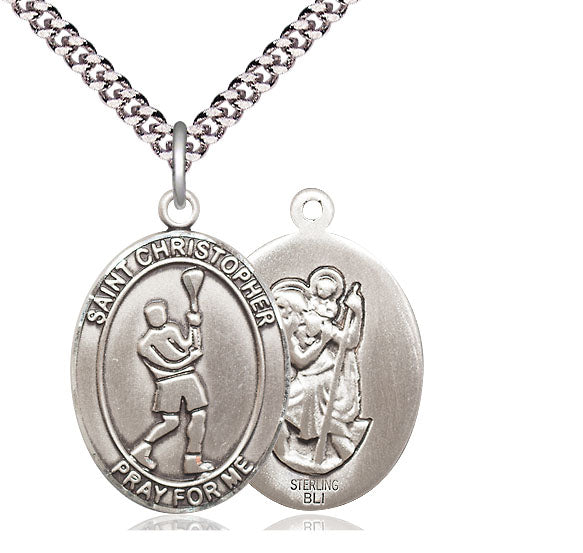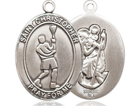 Sterling Silver St. Christopher Lacrosse Medal | Large