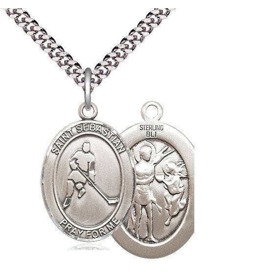 Sterling Silver St. Sebastian Ice Hockey Medal | Large