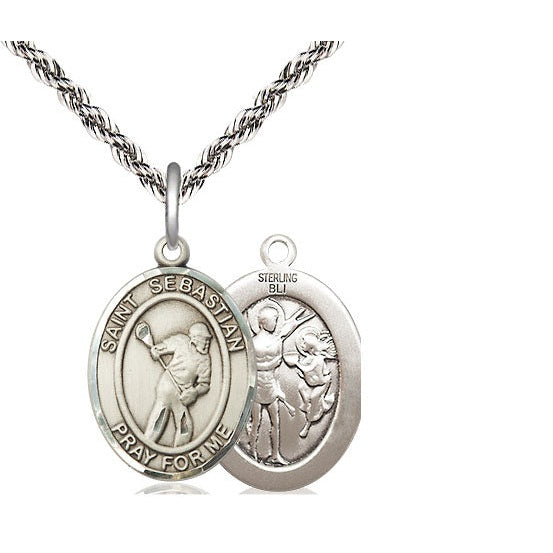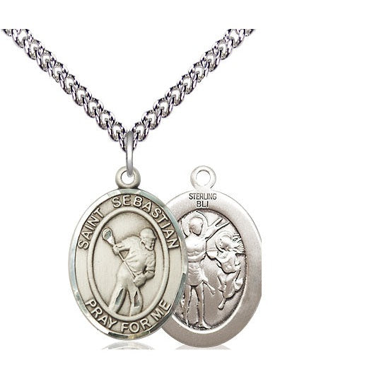 Sterling Silver Saint Sebastian Lacrosse Medal | Medium