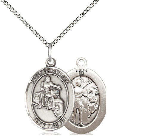 Sterling Silver Saint Sebastian Motorcycle Medal | Medium