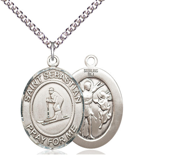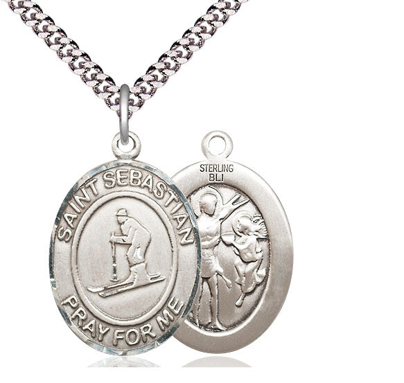 Sterling Silver St. Sebastian Skiing Medal | Large