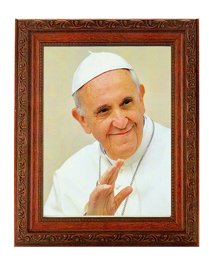 Pope Francis In Ornate Wood Frame 10" X 12"