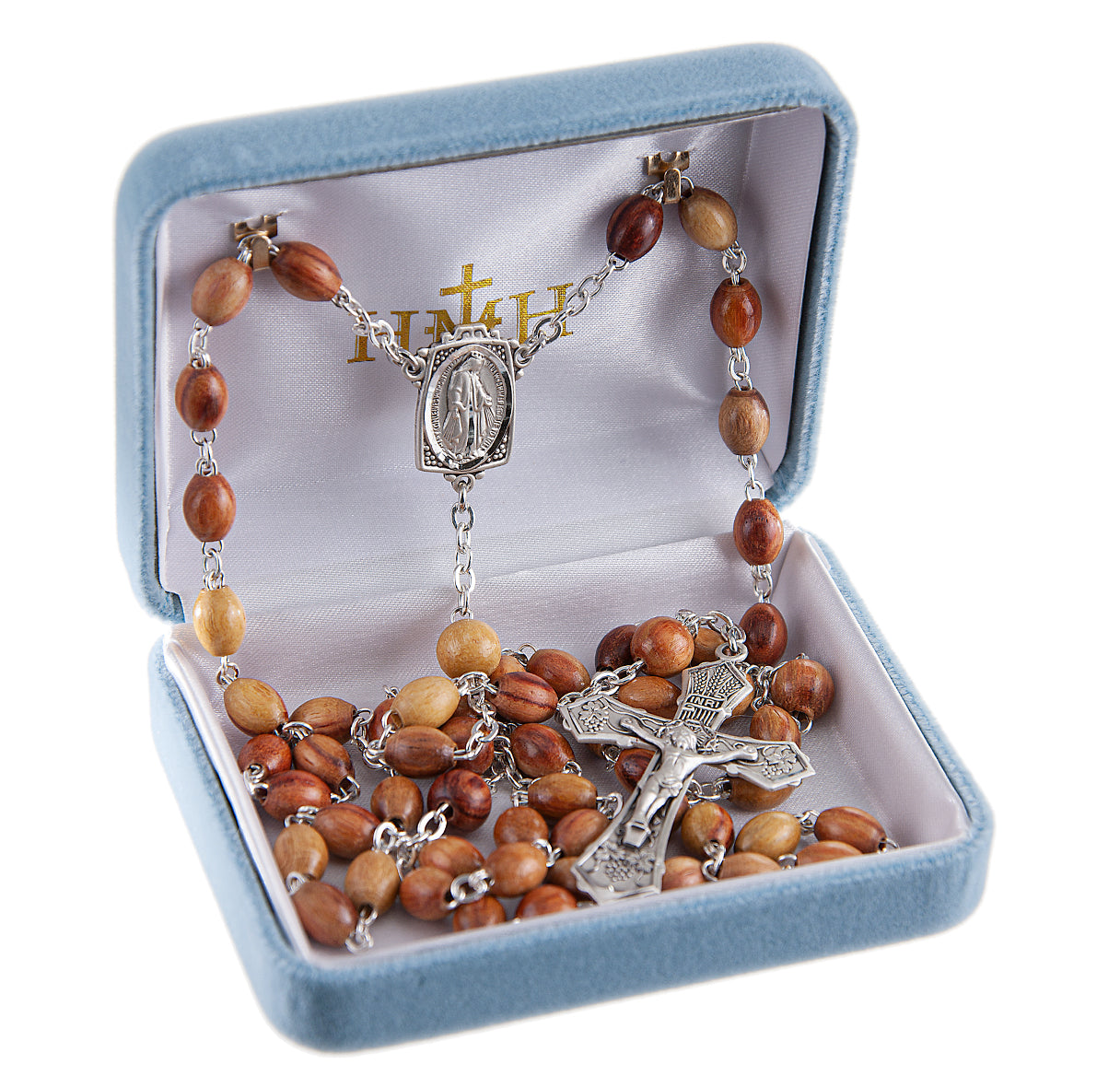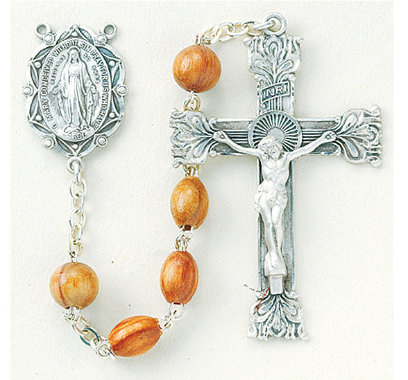 This Genuine Rose Wood Oval Rosary is made in the USA.