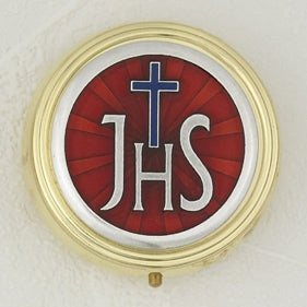 Red Enameled JHS with Cross Pyx