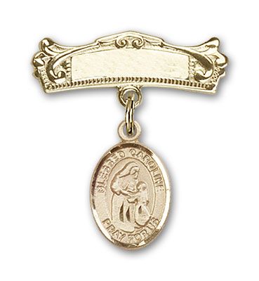 14kt Gold Baby Badge with Blessed Caroline Gerhardinger Charm and Badge Pin