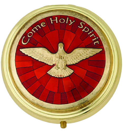 Elevate your faith journey with our Red Enamel with Gold Plated Holy Spirit Pyx. Measuring approximately 2-1/4 inches, this exquisite pyx serves as a beautiful reminder of the Holy Spirit's presence in your life. Crafted with care and imported from Italy, its vibrant red enamel symbolizes the fiery love of the Holy Spirit, making it a perfect vessel for transporting the Eucharist for the sick or homebound.