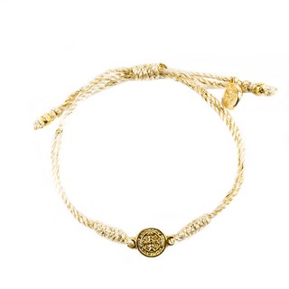 Saint Benedict Stretch Bracelet -White Pearl - Gold Spacers